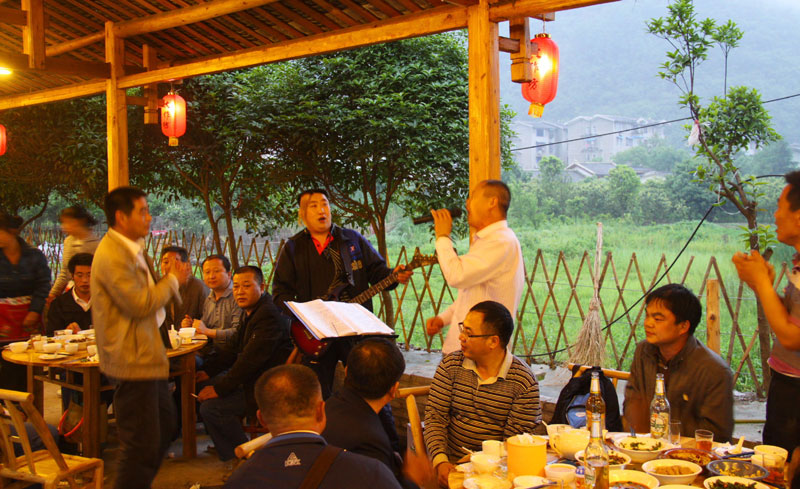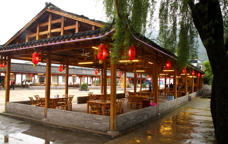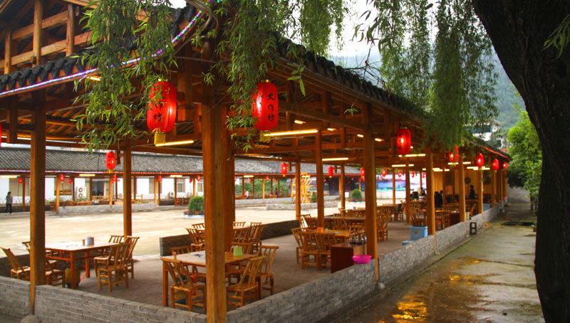 張家界武陵源大作坊美食城是一家集垂釣休閑,特色餐飲,夜市為一體的大型風味美食城!位于風景如畫的武陵源風景區(qū)區(qū)政府所在地,占地3000多平方米,可同時容納400多人就餐。這里也是景區(qū)內匯集土家美食,苗家美食的第一坊!美食城按純木四合院建造,內設酒作坊,豆腐作坊,臘味作坊,糍粑作坊,有垂釣區(qū),燒烤區(qū),菜品自助區(qū),客人廚藝展示區(qū),農產品展銷區(qū)等。酒作坊內聘請了民間煮酒大師現(xiàn)場煮酒,你有機會可以現(xiàn)場吃到熱乎乎的頭鍋酒,酒坊內有純米酒,包谷燒,高梁酒,有用野果泡制的各種果酒---燈籠酒,楊梅酒,彌猴桃酒等,更有特色的是把高梁酒放在正在生長的楠竹內,用竹內竹膜的香味把酒增香,十二天就把竹子砍下再放養(yǎng)三天就好了,客人要吃現(xiàn)場鋸竹筒酒吃!豆腐坊也是聘請民間老農現(xiàn)場用自制的石磨做豆腐,在這里你可以吃到真正有豆香味的原汁原味的石磨豆腐,和渣,菜豆腐,豆腐腦等豆制品!臘味作坊里有冬天用各種香料熏制的正宗湘西藏臘肉,臘豬頭肉,臘香腸,臘豬腳,各種臘制品臘野味等。糍粑坊每天在晚上人多用餐高峰時現(xiàn)場打滋粑,客人也可以自己參與打糍粑這個快樂的過程,想受過年時才有的熱鬧情景!在垂釣區(qū)里我們放養(yǎng)有很多野生魚類,有時間了你可以來這里休閑垂釣,得到的魚我們就會給你現(xiàn)場加工,有清沌的,紅燒的,青椒燜的,酸湯的,都很好吃哦。燒烤區(qū)里,我們高薪聘請了燒烤大師為你現(xiàn)場制做,你也可以自己動手,有烤羊排羊腿,各種串烤,烤全魚,烤全兔等,還有各種鐵板烤可以自己炒著吃!菜品自己選區(qū)里有各種山野菜,壇子菜,干菜,臘味等,有各種鮮活的魚類,河蛘,水魚,田螺,龍蝦等,有各種農家的土雞土鴨等,有各種鮮活的野味等你來享受美味呢!客人廚藝展示區(qū)里老板特設制地幾口大鍋, 很有特色的是, 你可以自己親自下廚, 酸甜苦辣任您自由調配 。 煮好了, 大家就圍著這“灶臺”合一的飯桌享受張家界的美食了。(張家界的三下鍋是很有特色的,是邊煮邊吃的, 只是這“三下鍋”是“大型三下鍋”而已。到張家界旅游,吃張家界的“三下鍋”是一種獨有的旅游體驗,到大作坊吃“大型三下鍋”,則更將會為你的旅程增添一份難得的回味。農產品展銷區(qū)里展示著當?shù)鼗蛳嫖鞯貐^(qū)最暢銷的農產品食品:正宗湘西鄉(xiāng)里臘肉,香腸,各種臘制品,洗車河霉豆腐,靈潔牌剁椒辣醬系列,菌油,正宗茶籽油,苗家酸湯,鄉(xiāng)里正宗葛粉,大壇湘西五糧液,竹簡敲敲酒,張家界茅巖霉茶,野生蜂蜜,高山葛粉,張家界第一山珍巖耳,葛根片等等! 武陵源大作坊美食城是武陵源景區(qū)規(guī)模最大,品種最多,環(huán)境最優(yōu)雅的休閑美食城。有各式小炒火鍋,岳陽特色燒烤系列,鐵板燒系列,鴨霸王系列,潮州特色砂鍋粥系列,涼菜醬菜系列,湘西地方特色小吃系列等。美食城整晚邀請著名的流浪歌手阿彪為你獻歌助興,并可同阿彪歌聲互動,在這里你可以放下一天的疲勞,拋開一身鎖事,度過美好的每一分鐘......武陵源夜市大作坊,是張家界旅游體驗的重要一站,它受到如此多的游客的熱捧,是因為,在這里能釋懷,是因為在這里,能體驗張家界旅游的文化內涵, 是因為在這里,能給你一個自由的空間......