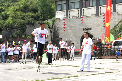 張家界高花燈亦稱高皇燈,是流行于永定沅古坪一帶富有民族特色的舞蹈。表演時,12人至24人不等。配有鑼、鈸、嗩吶、鼓等樂器。每人手中拿一盞紙扎燈籠,內(nèi)點蠟燭兩根,頂扎一木偶像,用五色紙剪成戲文故事如“八仙” 、“瓦崗寨”,“梁山英雄 ”之類。高花燈表演有一套程式,要求東起西落,進一個“半邊月”,出一個“月團圓”,舞個“太極圖”。亦可進民房表演,叫“愿燈”,多為祝福、還愿或為某家喜事湊趣。打吆喝、打口哨則只能到戶外表演,叫“眾燈”,是讓大家看的。其形式又分民燈、戰(zhàn)燈。前者表演 古代先民的遷徙、繁衍、勞動、生活;后者表演打仗破陣。隊形變化有“織籬笆”、滾柱頭”、“十八斗”、“螺螄轉頂”、“八卦陣”、“過天星”、“一字長蛇”等二十余種。如破“象棋盤陣”,主人插三十二根香,擺成棋盤陣,表演時,主人舉紅傘,玩燈者舉黑傘,從河道進,將眾“子”一一吃掉(即踩香),這是斗智的競賽。只見燈火如流星般穿插舞蹈 ,旁邊配以龍燈互舞(配龍玩燈,是高花燈的主要特點之一),那激起的鑼鼓聲、吆喝聲、口哨聲,掀起有節(jié)奏的聲浪,熱烈而歡快。 張家界高花燈發(fā)祥于張家界市永定區(qū)沅古坪鎮(zhèn)等地區(qū),與沅古坪地區(qū)接壤的沅陵、桃源、慈利等周邊區(qū)縣也有少量玩高花燈的習慣。 高花燈的燈代表著光明幸福,12個燈表示12個月,月月平安無事。每年春節(jié),每個村寨都要操練一班高花燈,辭舊迎新。制作時,藝人用竹篾和紙扎糊成12或24個燈籠,在燈籠下加上一個長柄燈托,并在燈籠上扎上五顏六色的“故事”,如“八仙”、“耿氏送子”等。夜晚,在燈籠里點上木油臘燭,一人舉一個燈籠,邊舞邊組成多種隊形。一眼望去,流光閃爍,尤如銀河戲舞。 張家界高花燈不但為本鄉(xiāng)本土的觀眾所喜愛,而且受到海內(nèi)外朋友及國際友人的高度贊賞。因為它是中國古老的民間舞蹈代表,它以自成體系的記譜方法,延繼著中國舞蹈的血脈,以其悠久的舞蹈歷史和多元文化特征,被舞蹈界認為是“中國舞蹈歷史上的活化石”,極具學術研究價值和很高的審美價值。已列入全省第一批非物質(zhì)文化遺產(chǎn)保護名錄。 高花燈相傳起源于東漢章帝初年,時“ 中蠻”覃兒健在澧水中下游舉義反漢,與漢軍“戰(zhàn)于洪下”(相傳為今大庸紅土坪,待考),洪下“蠻人”用火 把跳舞為義軍吶喊助戰(zhàn),終因漢軍勢眾,覃兒健與義軍全部戰(zhàn)死(至今留下懸鼓坪、御甲埡、扎營山、烽火臺等古戰(zhàn)場遺跡)。以后,當?shù)匦U人每年都必在過 后年(從正月初一至元宵節(jié))打火把集會跳舞, 栽“ 陽樁”(土話栽跟頭),表示對“洪下之戰(zhàn)”的紀念 。久而久之,火把進化成燈籠和扎人物事故,表演也 有一定規(guī)矩。至今,這種舞蹈藝術還保留著古老、原始、粗獷、豪放、悲壯的特色。 |