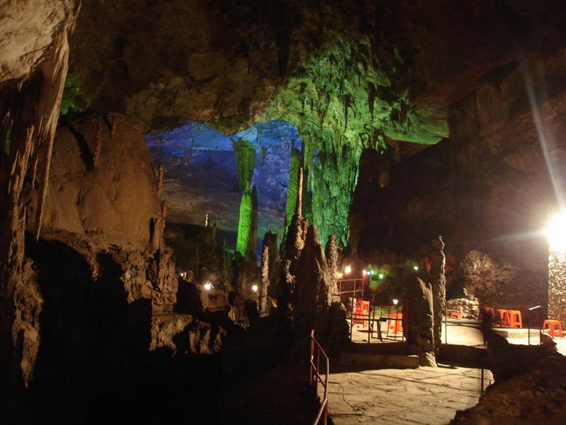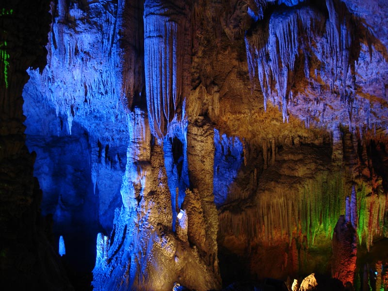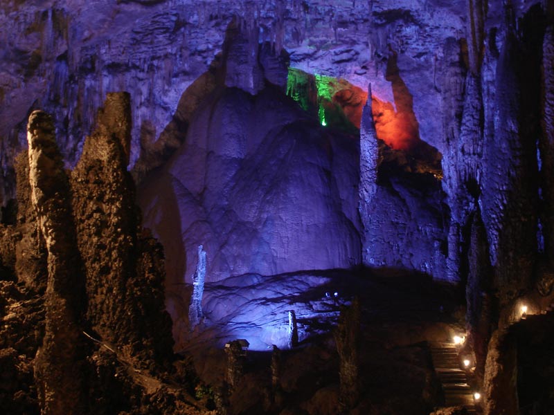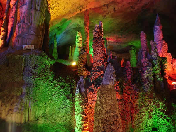 桑植縣九天洞 九天洞總面積達(dá)250多萬平方米,分上、中、下三層,最底層于地表420米。洞內(nèi)有40個(gè)大廳、3條陰河、12條瀑布、5座自生橋、6處千丘田、3個(gè)自然湖。洞中石筍、石柱林立,石簾、石幔遍布。堆珍疊玉、千姿百態(tài)。九天洞被譽(yù)為中國溶洞奇葩。