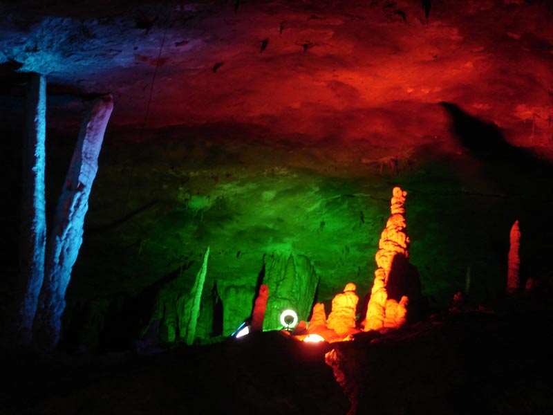 第三絕:九天洞美 九天洞美,美在自然,美在古樸,美在地下溶洞各種自然造型,美在各種色彩,美在世界珍稀。簡言之,九天洞勝狀,主要是洞穴美與色彩美,一句話,是自然美。當(dāng)探洞人王海然第一個(gè)在九天洞發(fā)現(xiàn)那些五光十色,造型各異,神奇乖巧的溶洞自然物時(shí),他感到興奮,感到驚訝,感到鼓舞,感到自豪并且被這些美麗的自然物陶醉了,以至于廢寢忘食。當(dāng)你置身九天洞,你可以仔細(xì)欣賞那洞底暗河的流水,那紅色的河床、它們是那樣嘩嘩的流,水聲又是那樣的美。那淡紅、朱紅和鮮紅的河床、河水,有是那樣鋪彩爍金,色彩斑斕,五光十色,真叫人眼花繚亂,目不暇接,越看越神,越看越迷,看的如癡如醉。