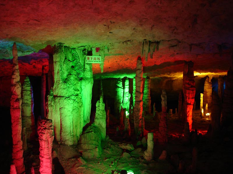 九天洞風(fēng)景區(qū) 地質(zhì)地貌 九天洞屬喀斯特地貌的特大溶洞,構(gòu)造復(fù)雜,發(fā)育于新華夏一極構(gòu)造三隆起南段,屬地層性復(fù)二迭系。目前已經(jīng)探明可供游覽的面積有 250 公頃,號(hào)稱“亞洲第一大洞”。常年溫度 20-22 攝氏底。