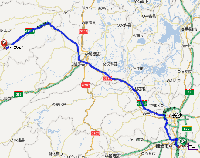 株洲去張家界自駕車線路圖