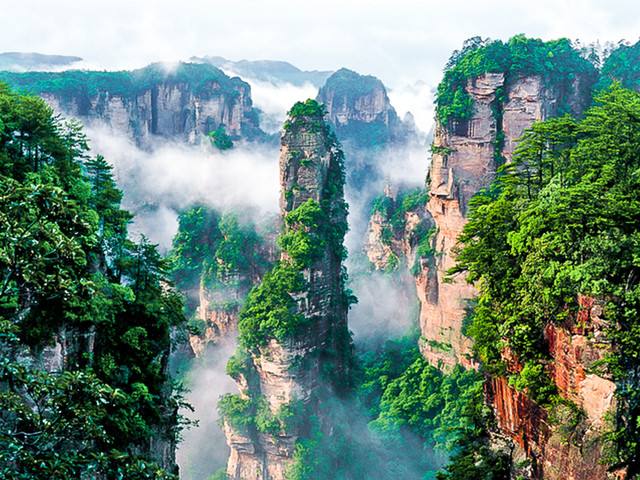 上 午: 張家界市區(qū)乘車赴武陵源世界自然遺產(chǎn)風(fēng)景區(qū)(車程約90分鐘),游覽【武陵源核心景區(qū)】(大門(mén)票245+3元),乘景區(qū)環(huán)保車前往天下第一梯【百龍?zhí)焯荨浚ㄌ焯萜?2元)直達(dá)【袁家界景區(qū)】,觀神兵聚會(huì)、后花園、天下第一橋,電影《阿凡達(dá)》外景拍攝地——“哈利路亞山”探尋影視阿凡達(dá)中群山漂浮、星羅棋布的玄幻莫測(cè)世界;參觀云霧繚繞、峰巒疊嶂、氣勢(shì)磅礴的迷魂臺(tái);